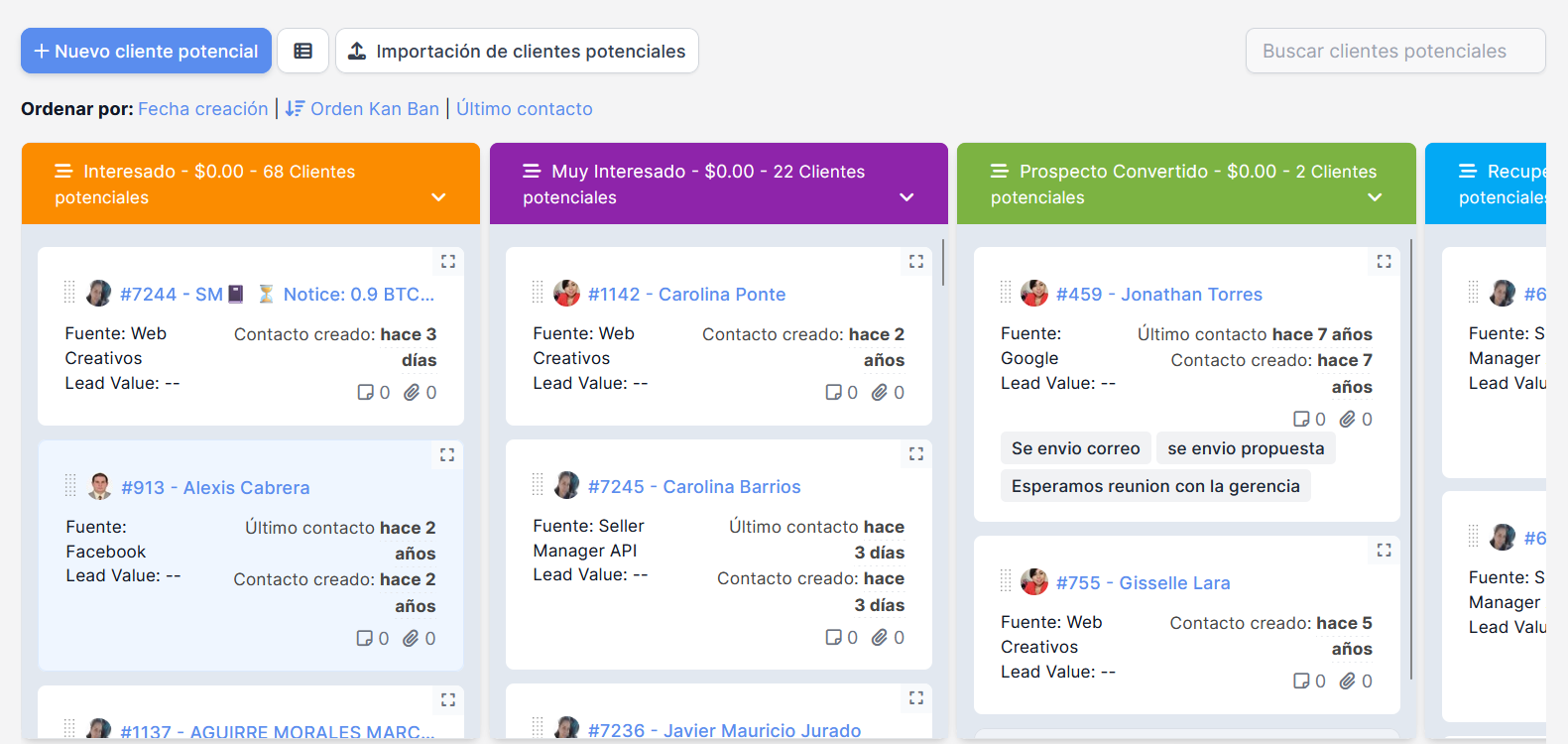 Tickets con SLA, priorización y portal de clientes. Reportes de tiempos y satisfacción.