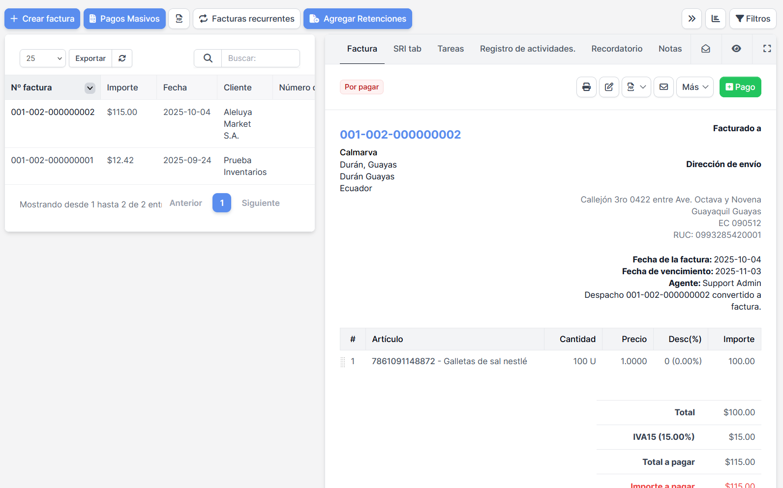 Comparador de cotizaciones, órdenes y facturas con retenciones. Portal de proveedores y recepción en bodega.